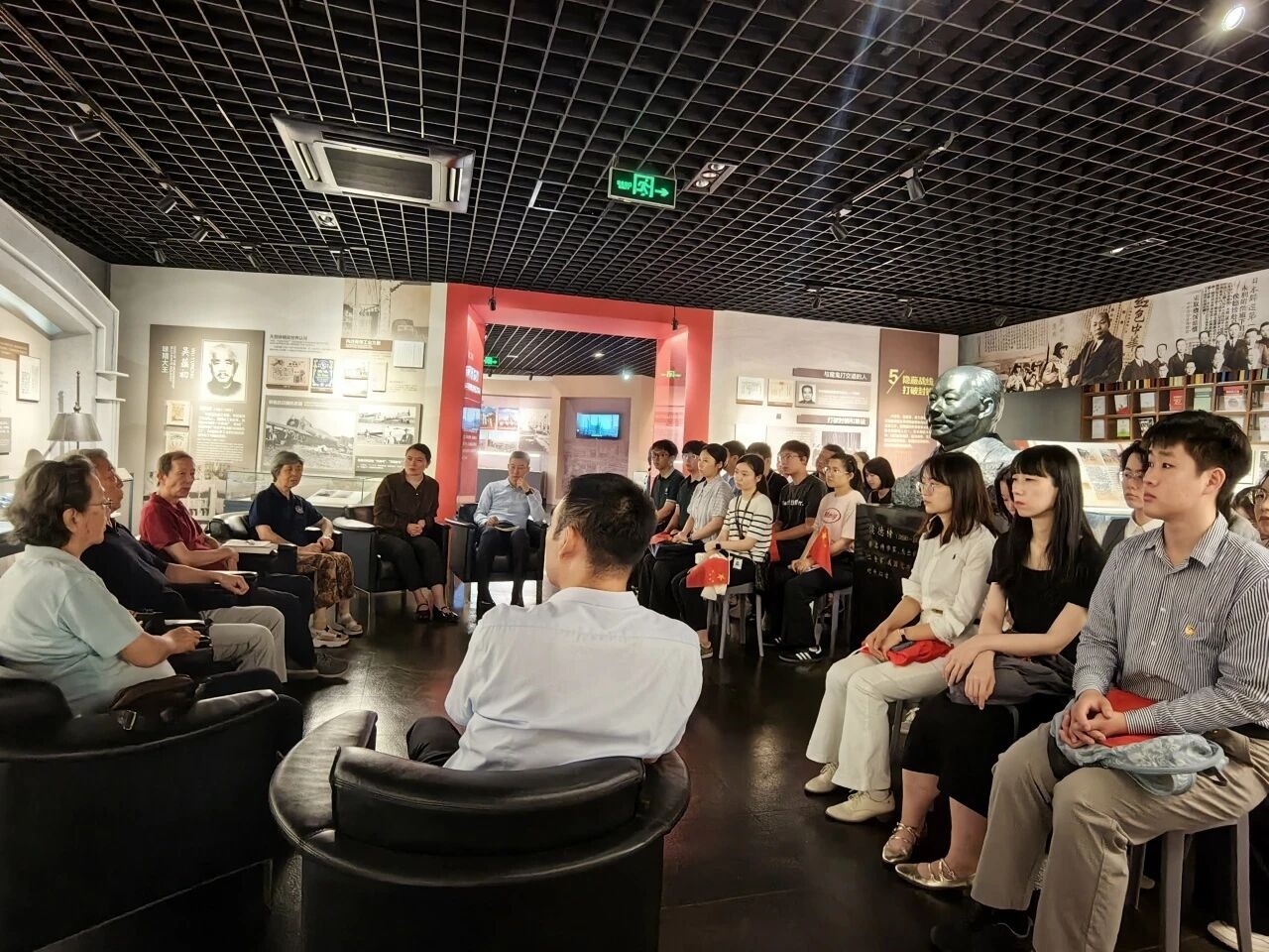 本次专场活动,中国化工博物馆特别邀请中国近代化学工业奠基人侯德榜的长孙侯盛锽先生及夫人方瑛女士,著名化工学家徐名材的孙辈徐立伦先生及夫人靳红梅女士莅临现场。四位老人携带珍贵家族记忆,为团员青年们细致讲述当年祖辈的抗战之路,带领青年们沉浸式感受烽火硝烟之下化工人英勇不屈的“精气神”。